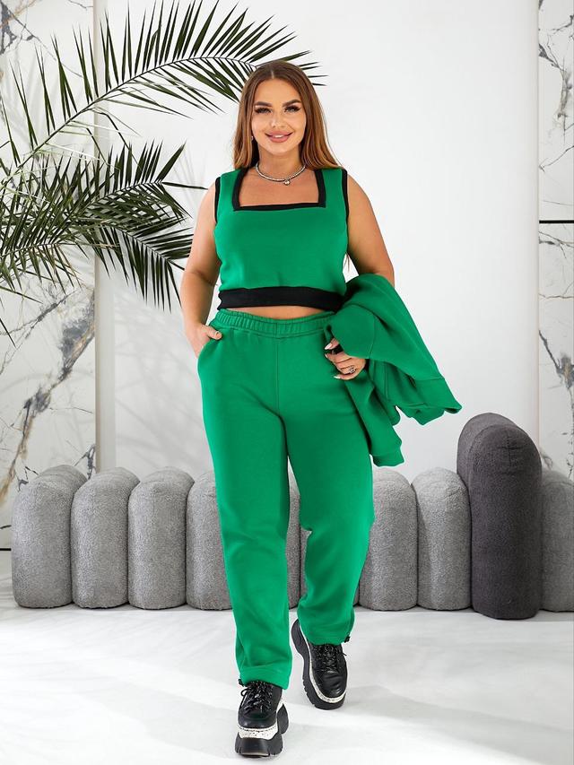 Спортивний костюм-трійка – це чудовий вибір для холодної зими. Він виготовлений із високоякісної тканини, яка забезпечує тепло та комфорт. Костюм складається з трьох предметів: штанів, толстовки та топу. Штани мають прямий крій та зручний пояс. Толстовка зі змійкою має зручну кишеню для телефону або ключів. Топ на брітелях дуже приємний до тіла. Костюм доступний у різних кольорах та розмірах, тому ви можете вибрати ідеальний варіант для себе.