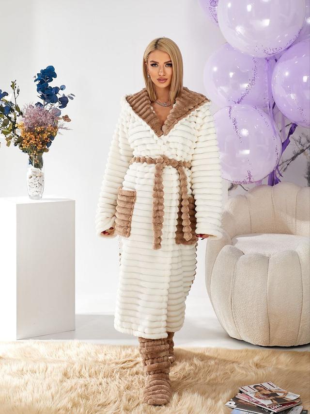 Дуже комфортний та теплий халат з чобітками у біло-бежевому кольорі